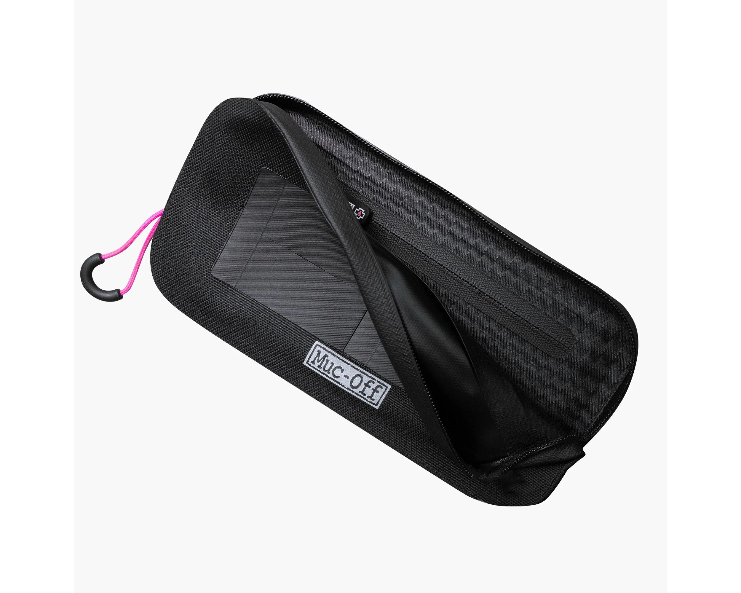 Introducing Muc-Off’s Waterproof Essentials Case, the ultimate storage solution for cyclists of all terrains, from rugged trails to road. Crafted from premium grade durable, waterproof 600D TPU fabric, this case provides the necessary protection for your ride essentials. Its robust rubber-encased rope zip pull ensures quick and hassle-free access while on the move. It’s durable, molded and heat-sealed construction keeps water out.