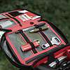 Material: Main material: Black and Red 600D TPU / Mini Carabiner (Keychain holder): Aircraft-grade aluminum, tensile strength: 265 NM / Hypalon 420D: Incorporated in key areas such as attachment loops and zipper pullers / Floor Padding: Molded EVA 3.5mm foam / Attachment Pad: Made of Hypalon 840D